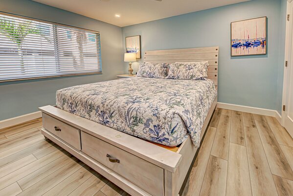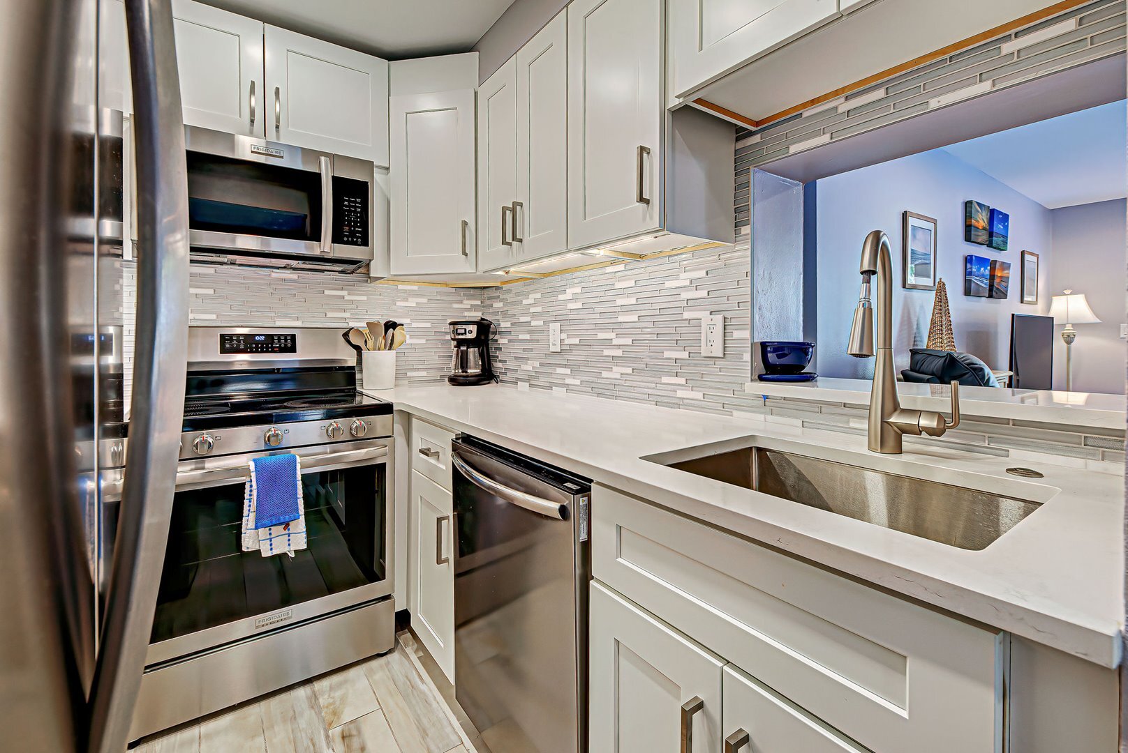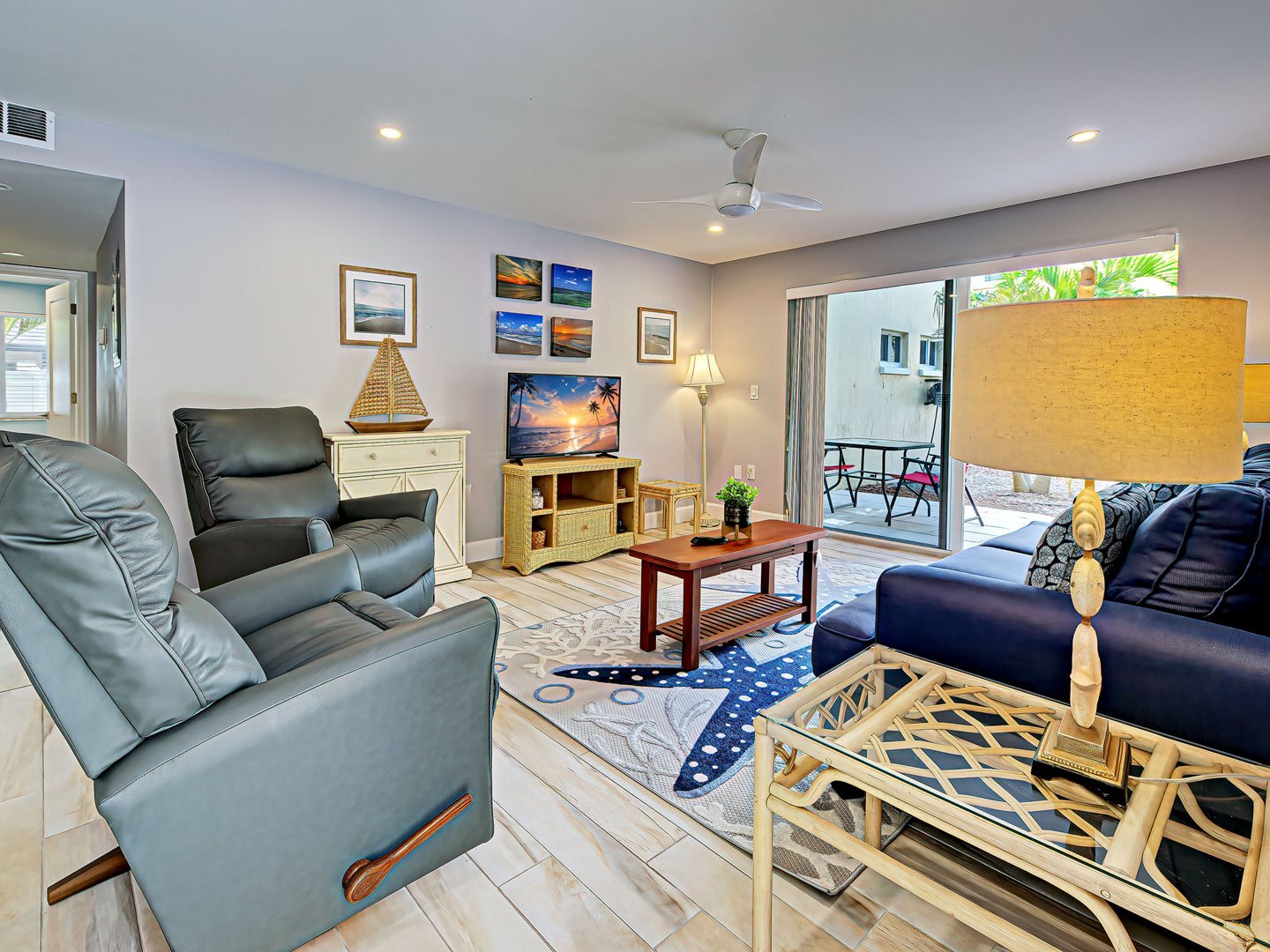 The Quarterdeck Resort has a large pool area and provides direct beach access. The resort has free internet access, an on site laundry, and each unit comes with one assigned parking spot. The Quarterdeck provides a relaxing atmosphere with opportunities for outdoor activities and strolls along the coast, while being only 1 mile from beautiful downtown Vencie which has an abundance of shops and restuarants to enjoy.