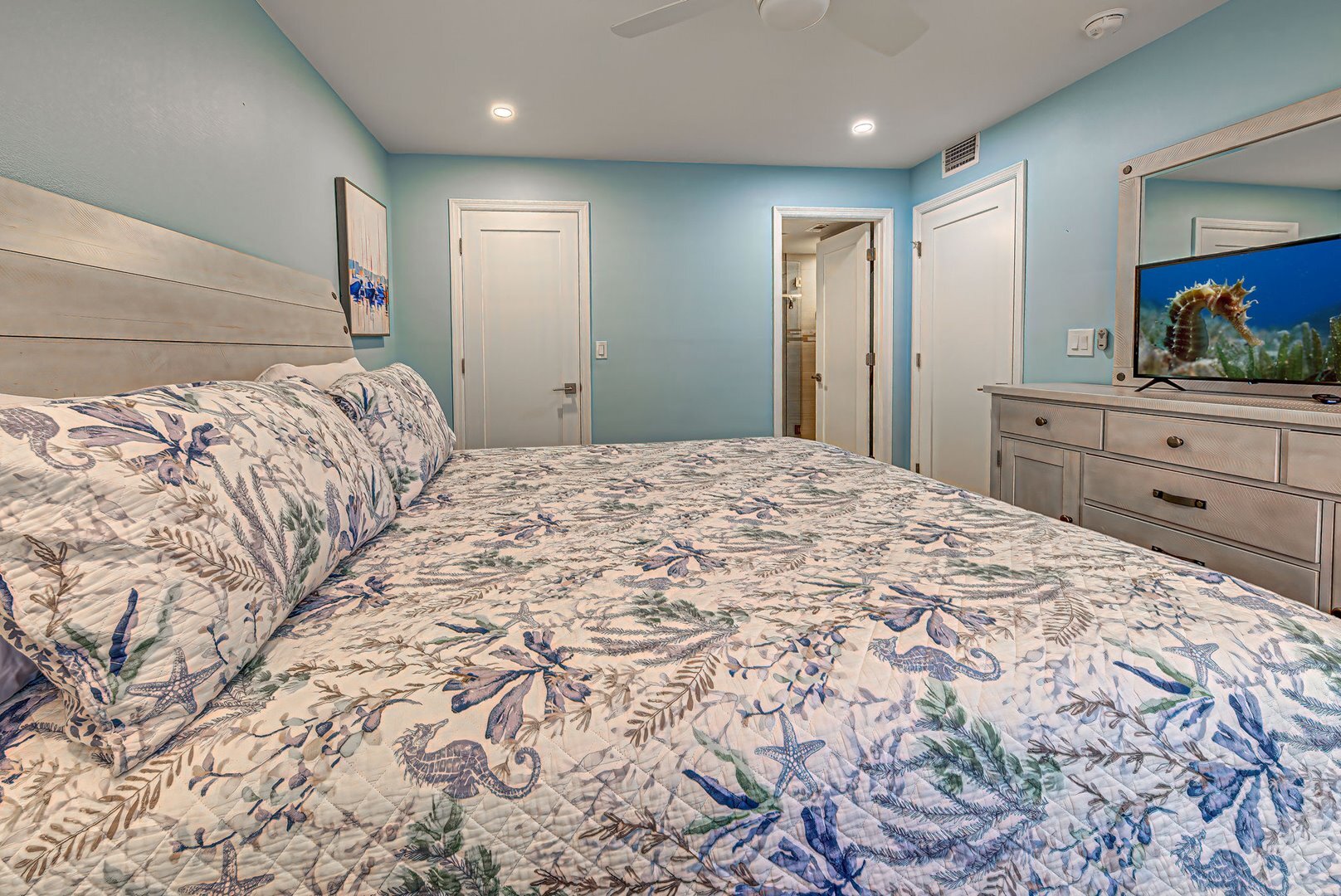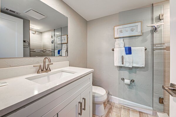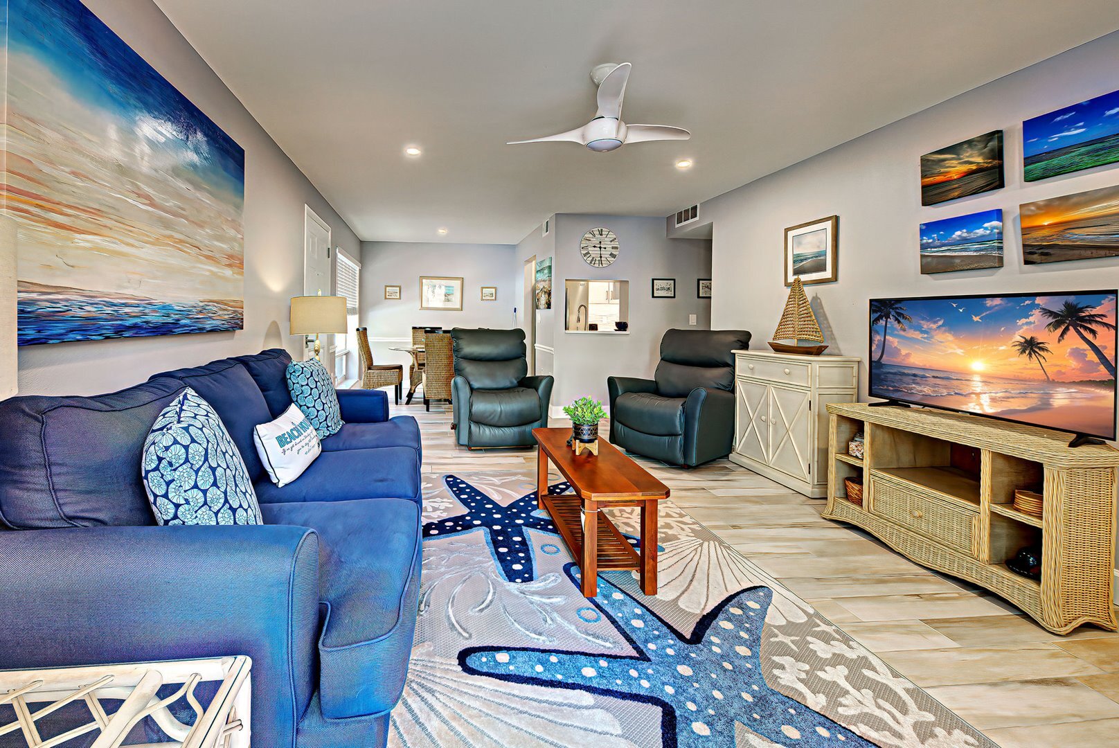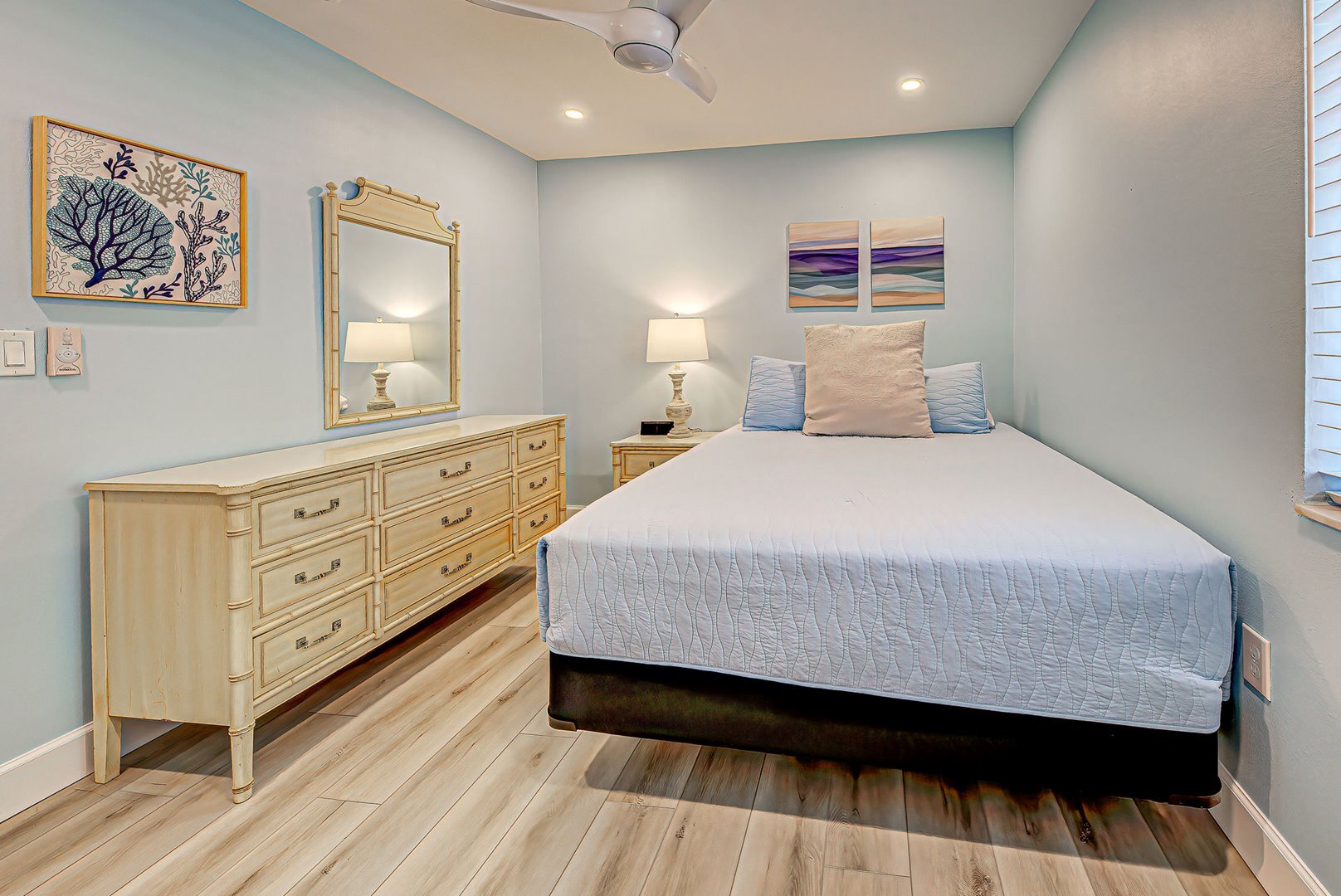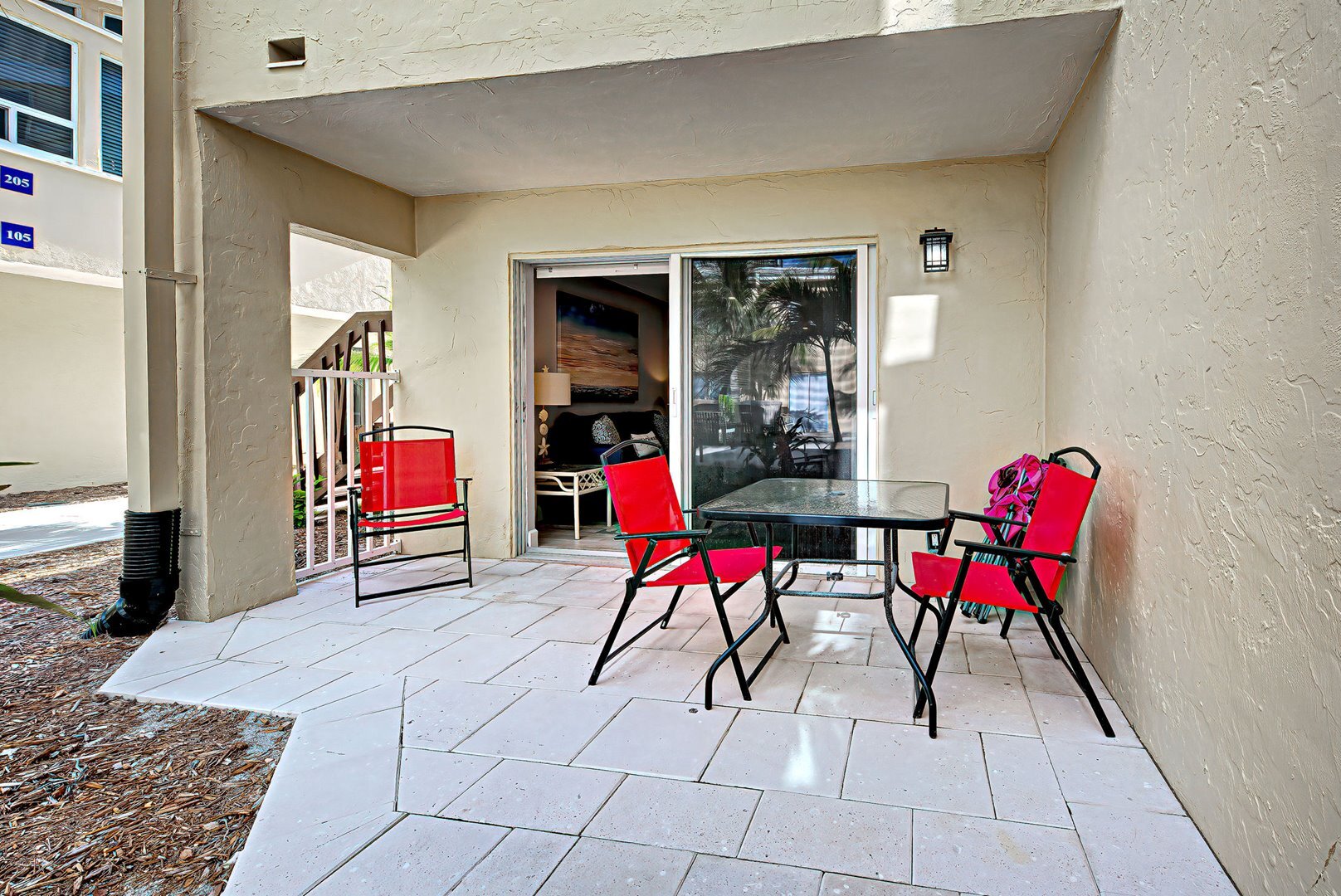 Unit 108 is a Courtyard Unit on the first floor with 2 Bedrooms (inlcuding a king, and queen beds, and a pull out sofa bed) and 2 full Bathrooms and it has a full kitchen, living room, and dining room as well.