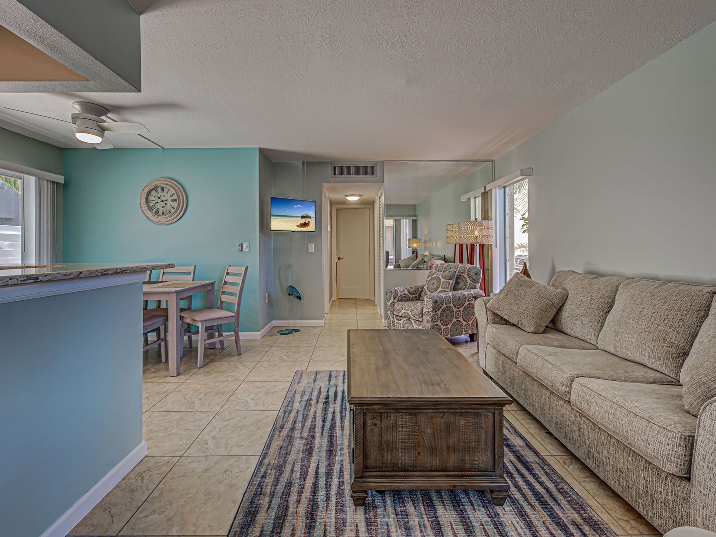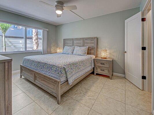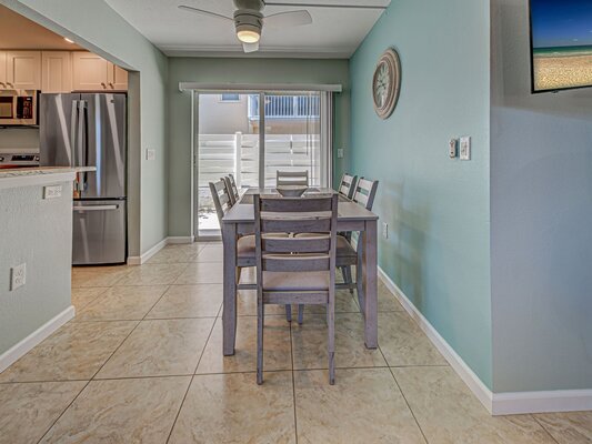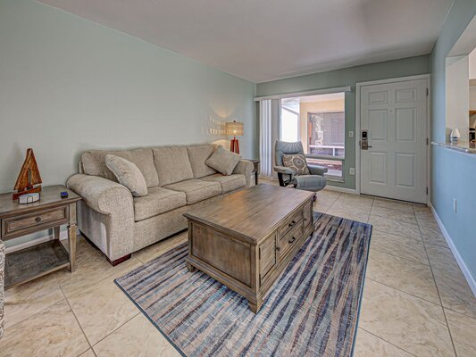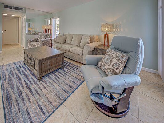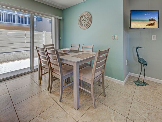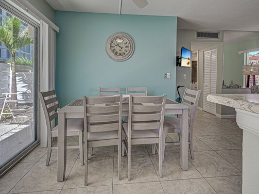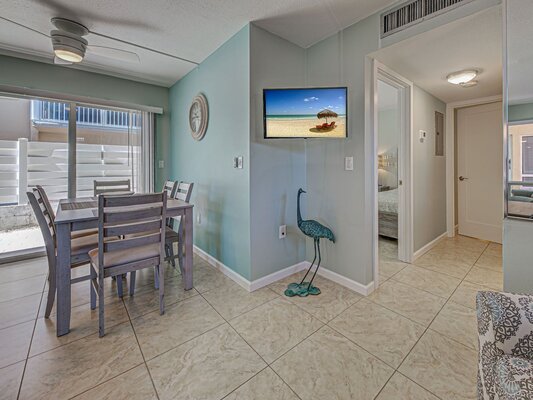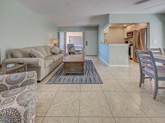 Unit 112 is a Courtside Unit on the first floor with 2 Bedrooms (inlcuding a king and 2 twin beds) and 2 full Bathrooms and it has a full kitchen, living room, and dining room as well.