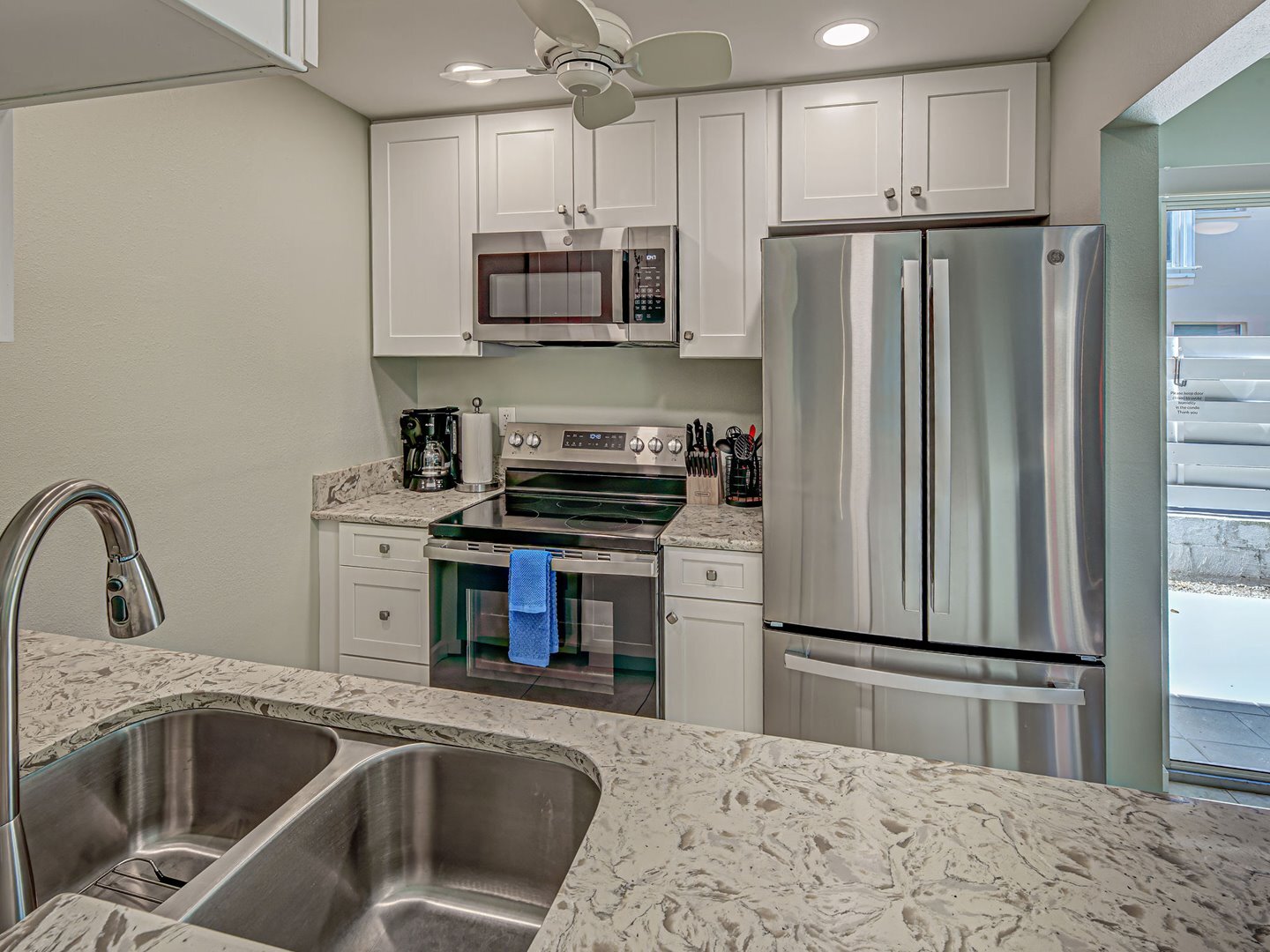 The Quarterdeck Resort has a large pool area and provides direct beach access. The resort has free internet access, an on site laundry, and each unit comes with one assigned parking spot. The Quarterdeck provides a relaxing atmosphere with opportunities for outdoor activities and strolls along the coast, while being only 1 mile from beautiful downtown Vencie which has an abundance of shops and restuarants to enjoy.