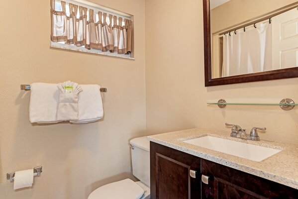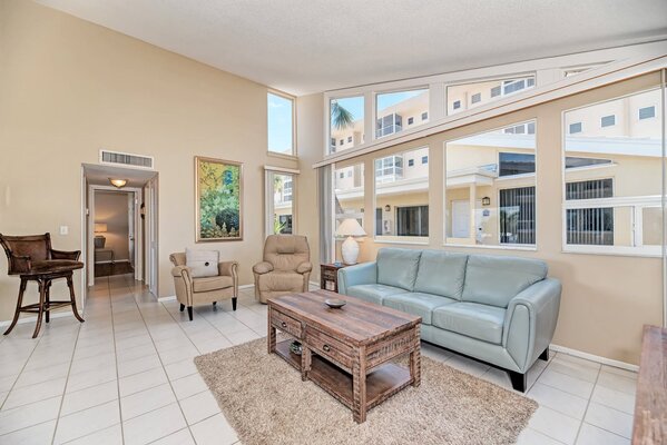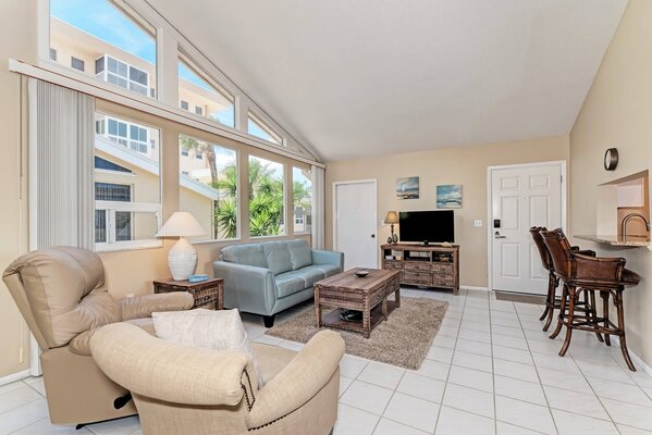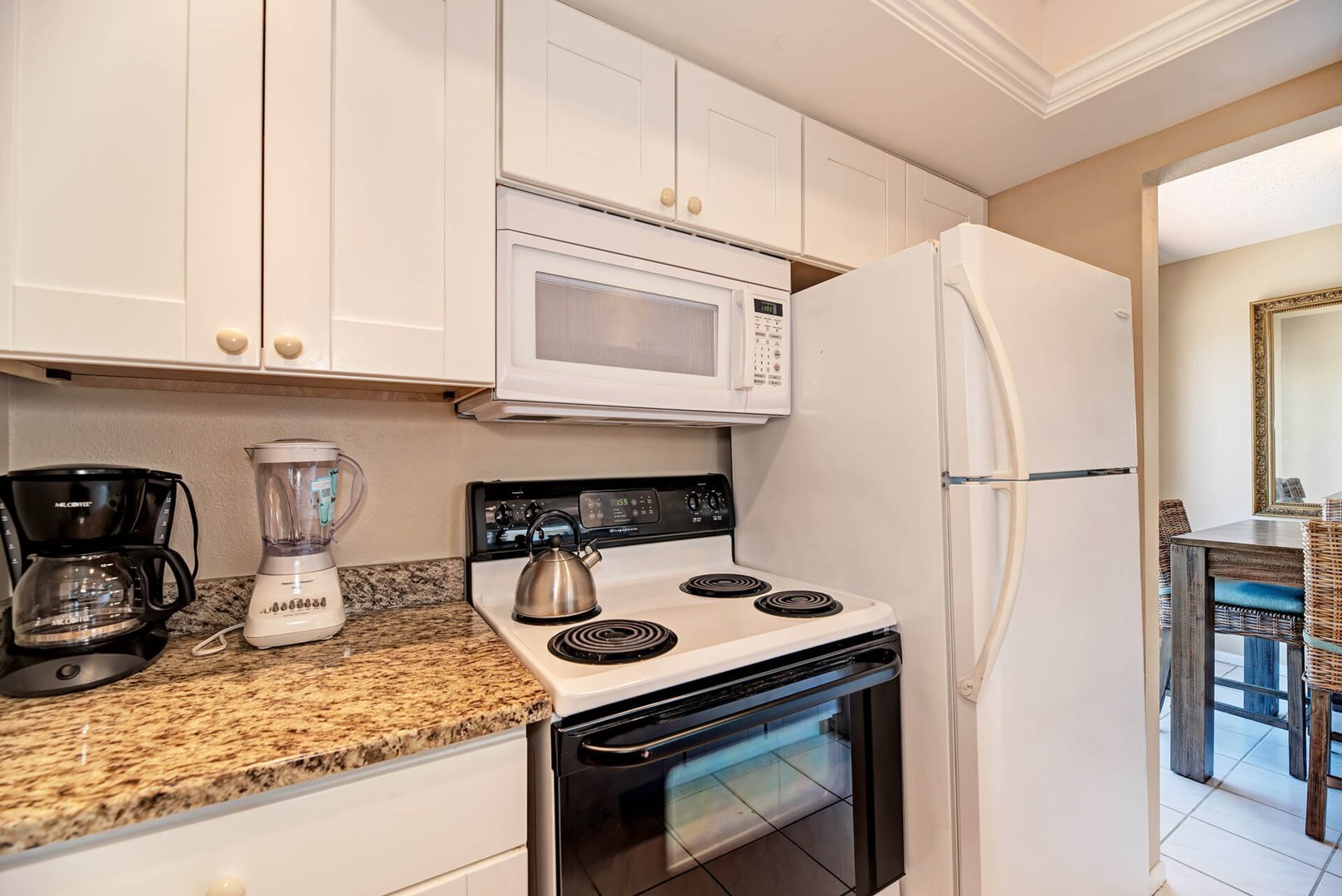 Unit 205 is a Courtyard Unit on the second floor with 2 Bedrooms (inlcuding a king and 2 twin beds) and 2 full Bathrooms and it has a full kitchen, living room, and dining room as well.