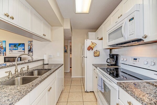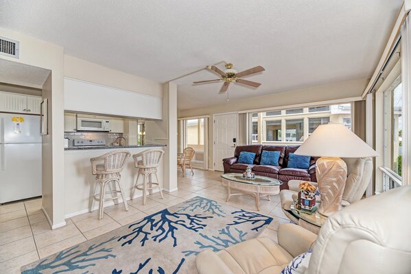 The Quarterdeck Resort has a large pool area and provides direct beach access. The resort has free internet access, an on site laundry, and each unit comes with one assigned parking spot. The Quarterdeck provides a relaxing atmosphere with opportunities for outdoor activities and strolls along the coast, while being only 1 mile from beautiful downtown Vencie which has an abundance of shops and restuarants to enjoy.